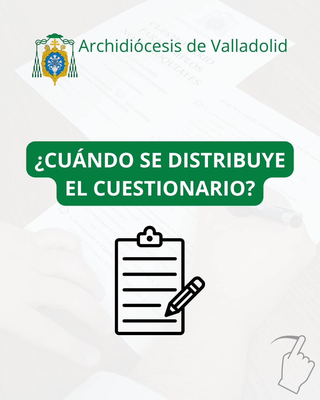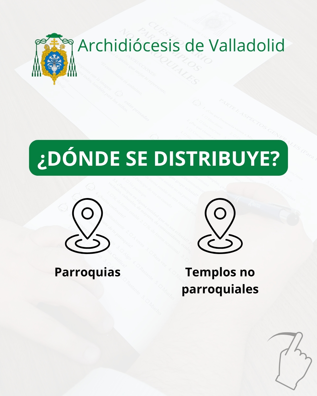 El cuestionario será repartido únicamente durante las celebraciones correspondientes al tercer domingo del Tiempo de Pascua —esto es el día 19 de abril y la tarde del sábado 18—. Se distribuirá en templos parroquiales y en templos no parroquiales, como basílicas, santuarios, iglesias penitenciales o de órdenes religiosas donde se celebra misa dominical.