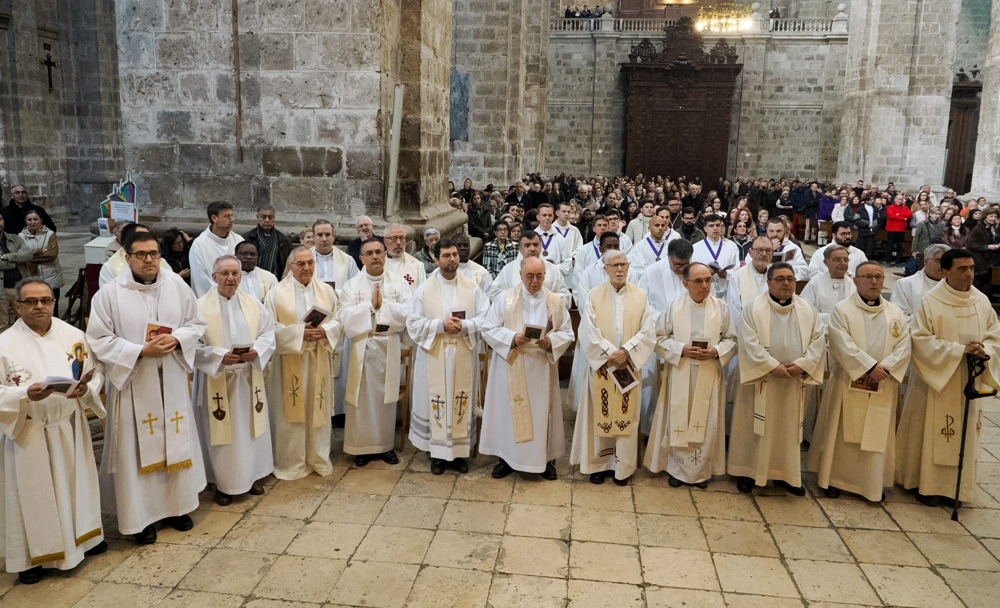 El Santo Concilio Vaticano II instaura el catecumenado bautismal, como un giro en la vida de la Iglesia. Acoger esta novedad, encarnarla en la Diócesis, en cada una de las parroquias, reflexionar también sobre las pilas bautismales que tenemos, cómo distribuirlas, cómo vivir este tiempo nuevo desde el punto de vista demográfico, cultural, económico, político... Para eso es preciso un discernimiento. Por esto, desde esta Misa Crismal, convoco Asamblea Diocesana. Para seguir la pauta del Sínodo, para unirnos a la reflexión de la Iglesia en Castilla, para celebrar juntos nuestra condición de pueblo de reyes, pueblo santo, pueblo sacerdotal y profético, pueblo de Dios; para ver la manera de celebrar y de proponernos a cada uno de nosotros un paso adelante en nuestra conciencia de ser ungidos, de ser pueblo, de ser asamblea. En ella hemos de discernir también sobre lo que el Señor nos pide para vivir el ministerio sacerdotal en esta hora, sobre lo que el Señor nos pide para vivir la caridad social y política de los laicos en esta hora, sobre lo que el Señor pide en este tiempo nuevo de la vida de especial consagración, tan rica en nuestra Diócesis.