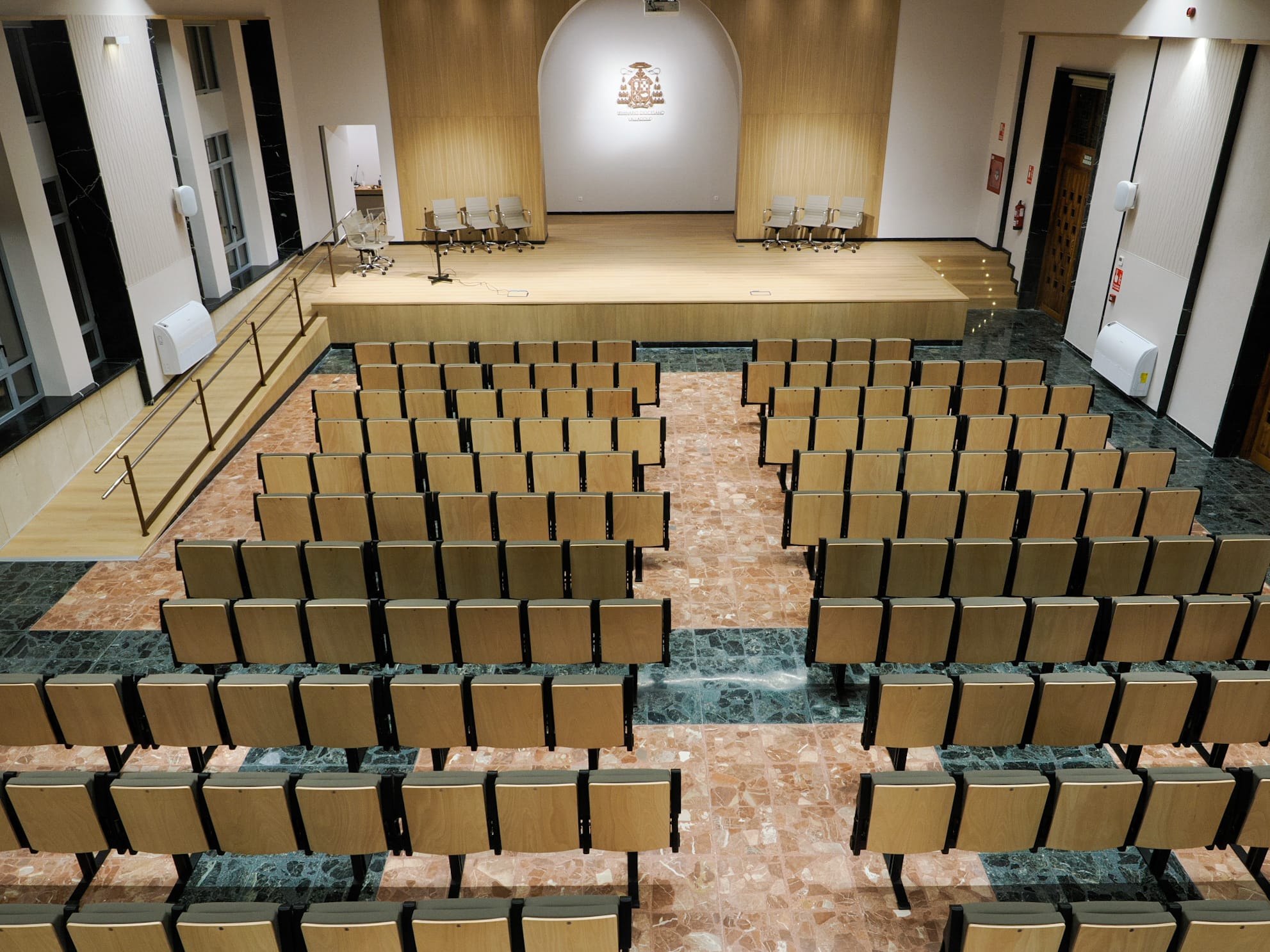 Con su reforma, el salón de actos del Seminario Diocesano mejora su accesibilidad, comodidad y funcionalidad para poder seguir albergando, tras la modernización de sus instalaciones a las necesidades actuales, las diversas actividades que organizan a lo largo de todo el año el propio Seminario, así como la Archidiócesis de Valladolid a través de sus parroquias, delegaciones, movimientos y asociaciones.