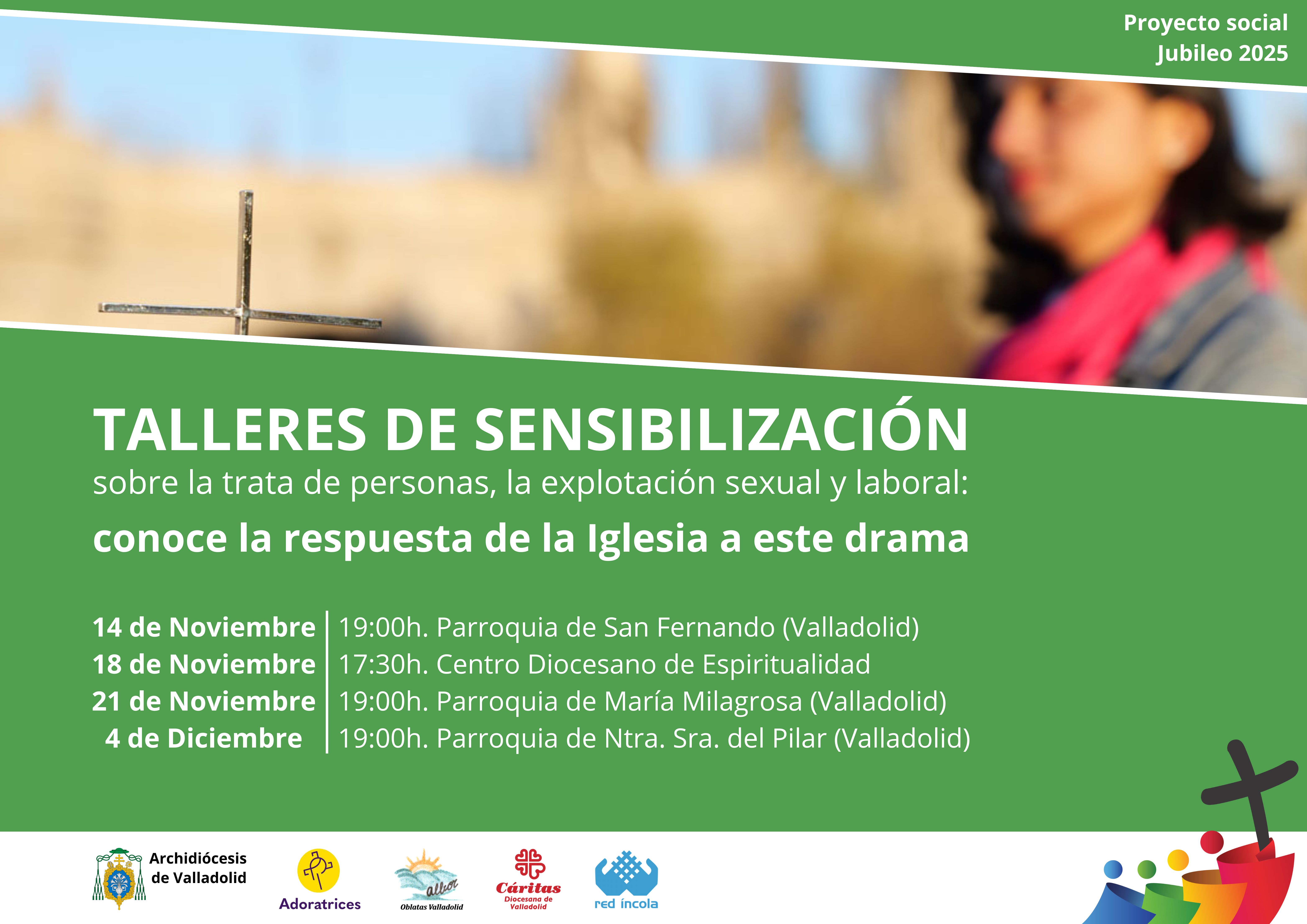 Estos talleres gratuitos, organizados conjuntamente con Adoratrices, Oblatas, Cáritas Diocesana y Red Íncola, están sirviendo para visibilizar y concienciar a la ciudadanía acerca de esta realidad, pero también para contribuir a su prevención. Además, durante estos talleres, impartidos por técnicos, se está dando también a conocer la labor de acompañamiento que la Iglesia Católica, a través de estas cuatro congregaciones religiosas y entidades, viene haciendo en Valladolid, acogiendo a personas víctimas de trata y/o explotación sexual y/o laboral y ayudando a restaurar su dignidad agraviada.