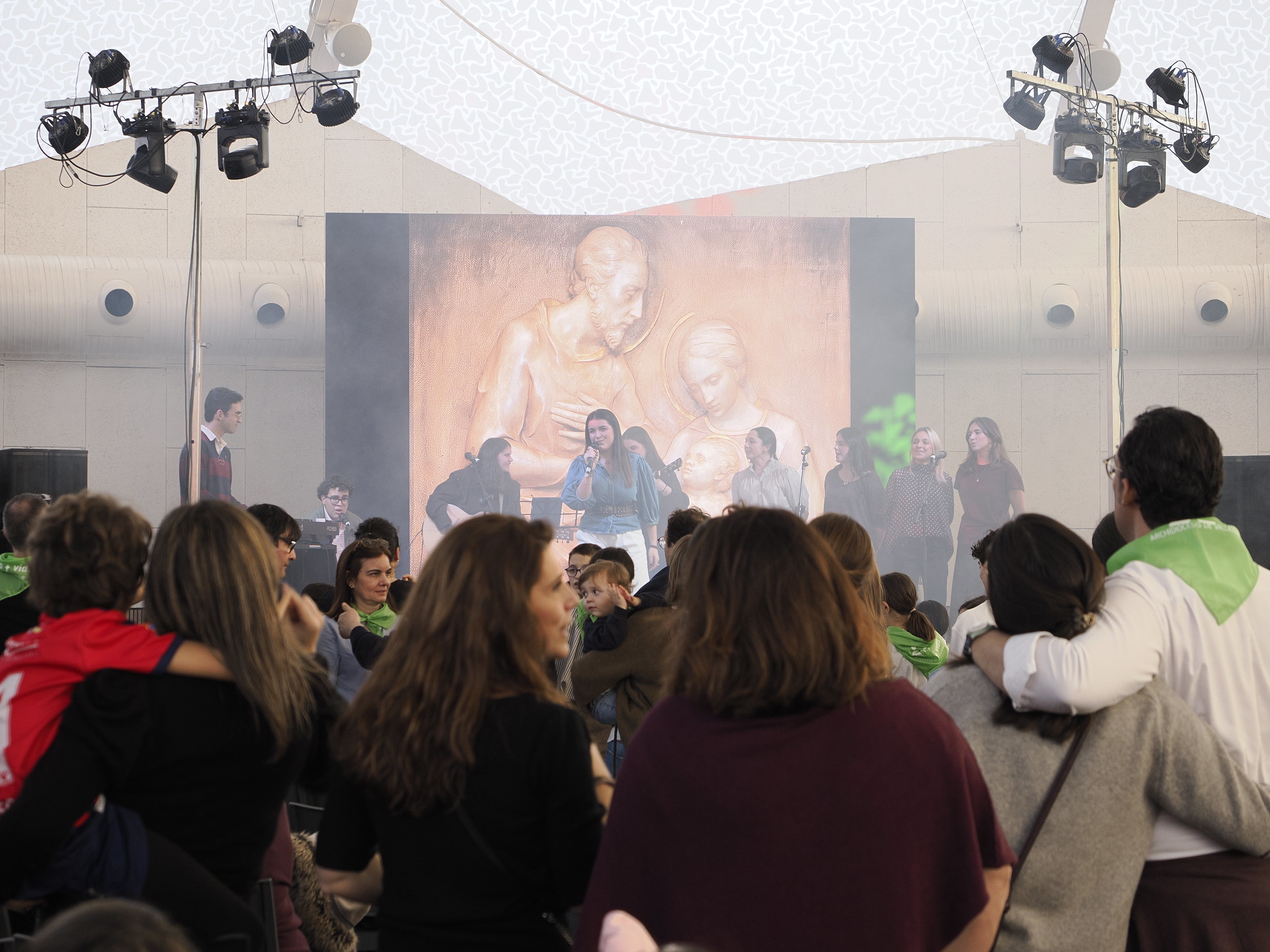 Los participantes en la segunda edición de la Fiesta de las Familias volvieron a destacar la buena organización. Algunos, como Álvaro, repetían este 2026 por “el ambiente”, que ya en la primera edición “me gustó mucho”. Para Fran, su mujer y sus tres hijos, en cambio, era la primera vez. “Algún amigo había venido y nos dijo que era un día divertido”, recordaba a IEV. Para él era, además, importante, “ponérselo delante a los niños, ahora que cada vez hay menos familias”. “Da gusto juntarse un día. Te calienta el corazón”, reconocía a las puertas de la Cúpula del Milenio, donde, al entrar, los sacerdotes se habían dispuesto en un improvisado ‘corner’ del Perdón para administrar este Sacramento a quien quisiera antes de comenzar la celebración de la Eucaristía, tras la cual el Santísimo quedó expuesto para su adoración durante todo el día en una capilla (temporal) habilitada en la misma Cúpula del Milenio.