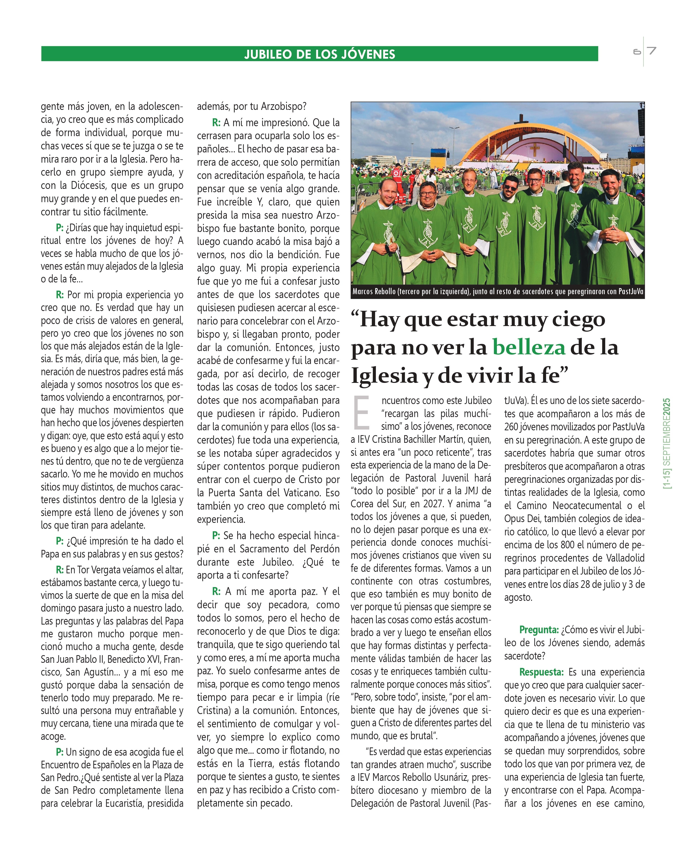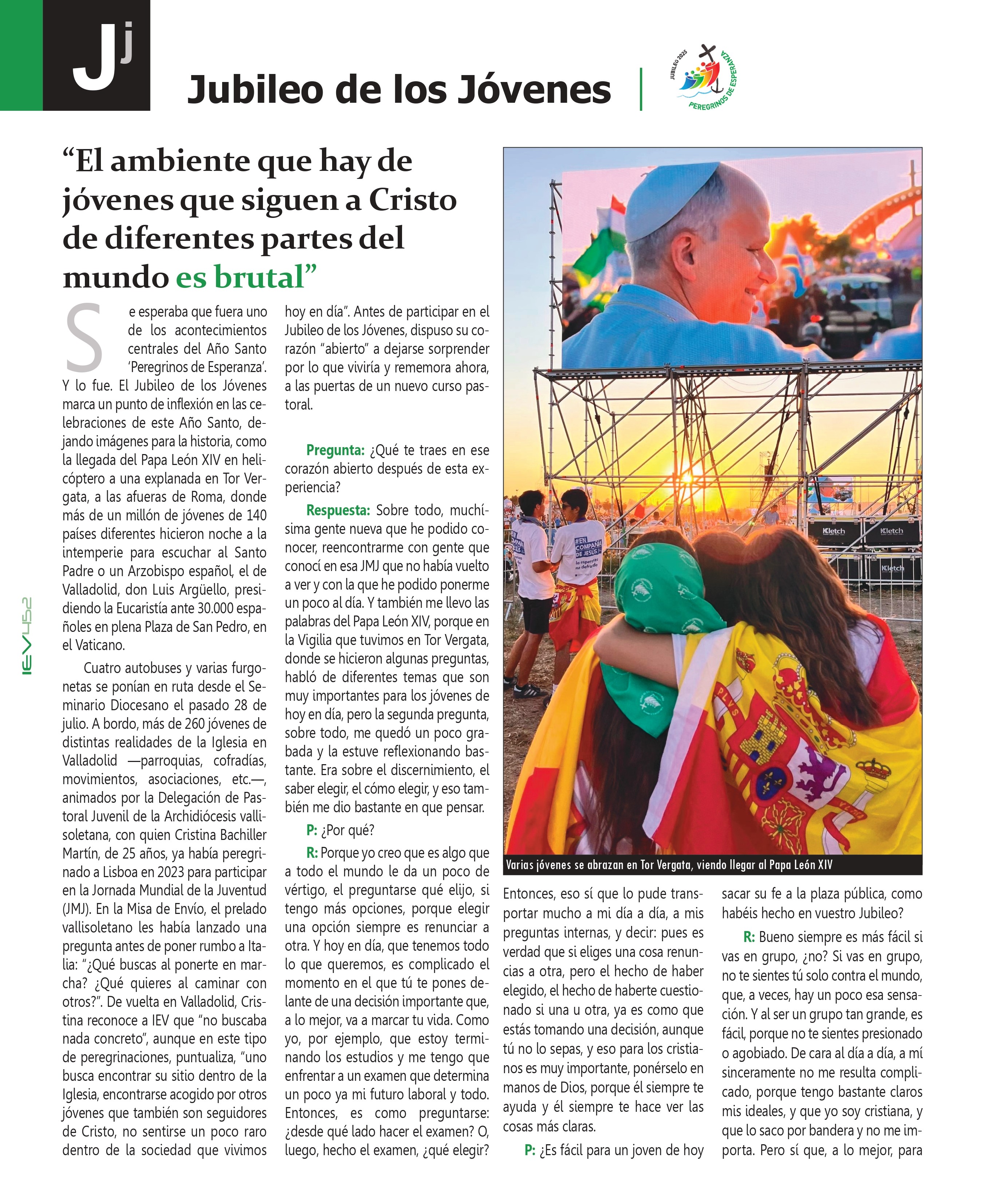 Al reciente Jubileo de los Jóvenes, celebrado en Roma y el Vaticano el verano pasado con motivo del Año Santo ‘Peregrinos de Esperanza’, se desplazaron desde la Archidiócesis de Valladolid alrededor de 800 jóvenes de distintas realidades y movimientos eclesiales. La participación de jóvenes católicos vallisoletanos en encuentros similares, como la Jornada Mundial de la Juventud (JMJ), ha sido una constante. A la última JMJ, celebrada en Portugal, peregrinaron desde Valladolid más de medio millar de jóvenes.