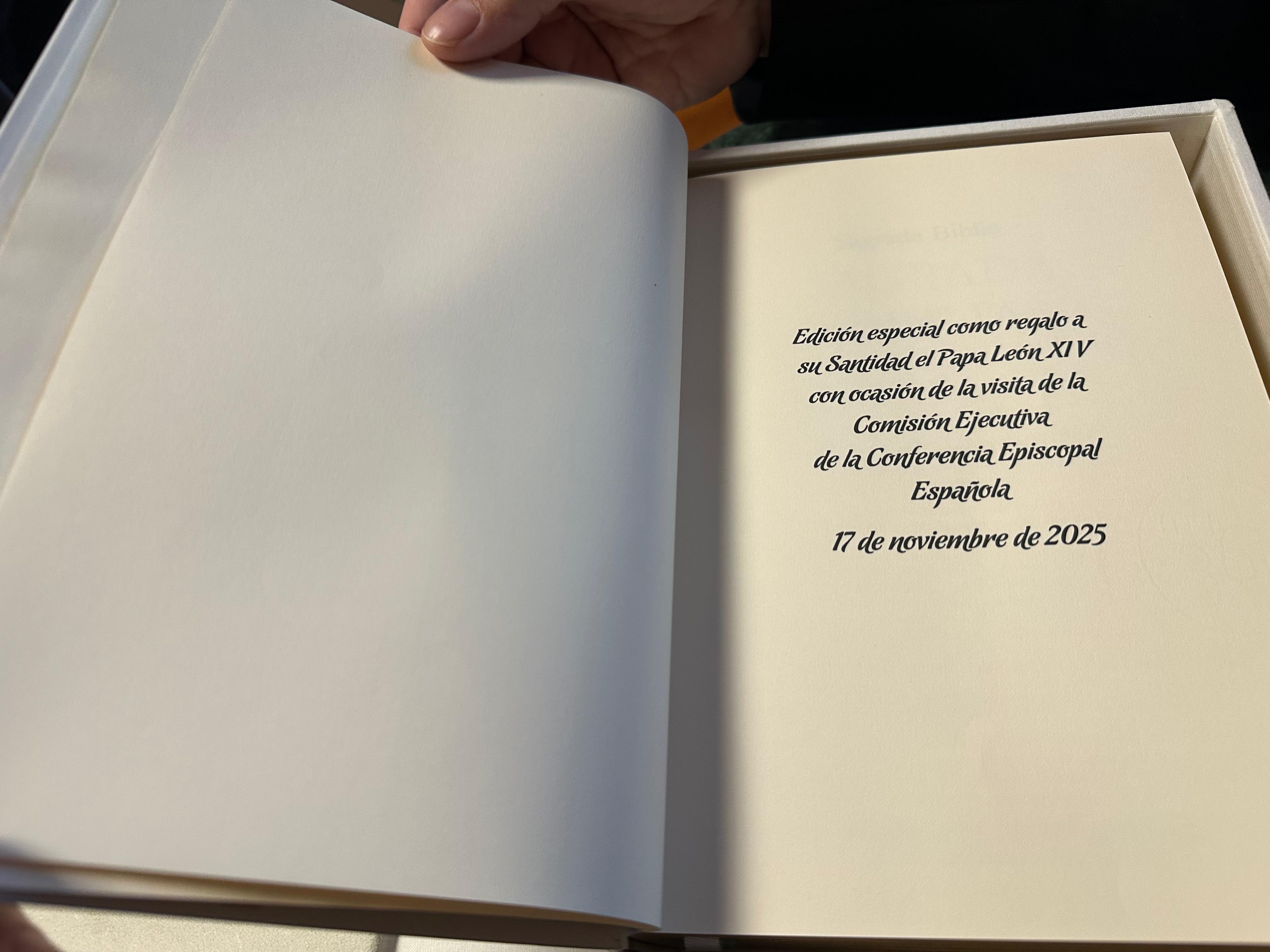 Los obispos españoles le han regalado a León XIV una edición especial de la Biblia, con la fecha de su visita. También le han hecho entrega, según ha confirmado monseñor Argüello, de un “donativo de la Iglesia española para la caridad del Papa”.