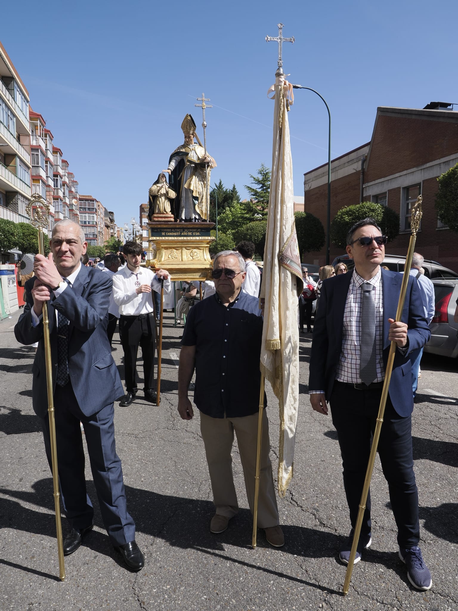 A las 11 de la mañana salían de la Iglesia Parroquial de Nuestra Señora del Carmen, portados a hombros, la imagen del Santo —un conjunto escultórico del siglo XVIII que lo representa junto a Santa Rosa de Lima, a la que administró el Sacramento de la Confirmación— y una de sus reliquias, traídas por primera vez a Valladolid y para esta ocasión desde la Ermita de Mayorga —templo jubilar en este 2026— para participar en una procesión extraordinaria por el barrio.